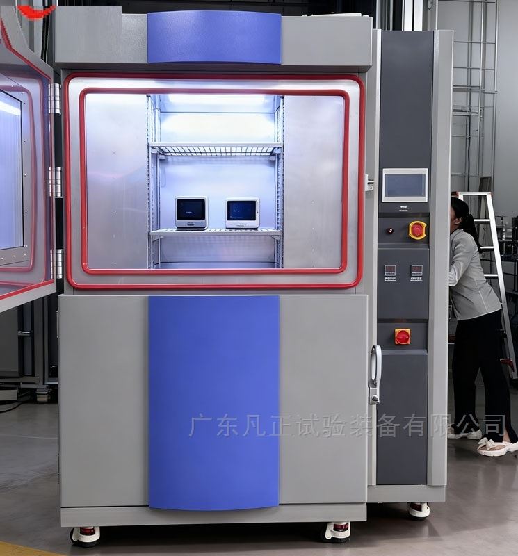 摄像头用三厢冷热冲击试验箱利用低温及高温蓄冷热槽,依气缸阀门动作需要,将高温能量及低温能量送至到试验槽内,从而达到快速温度冲击效果,平衡调温控制系统(BTC)+特殊设计之送风循环系统,以PID方式控制SSR,使系统之加热量等于热损耗量,故能长期稳定的使用。